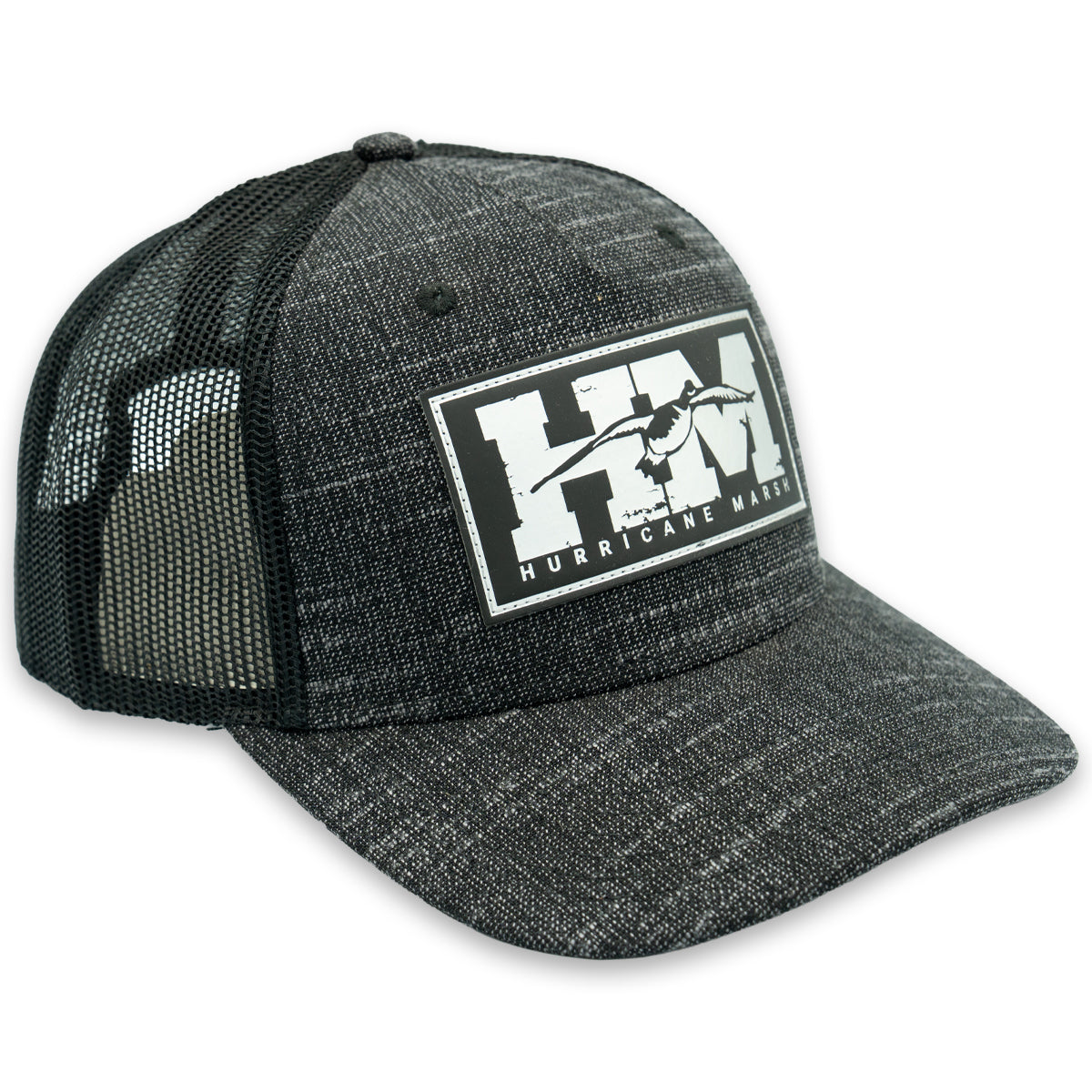 The Honker Laser Etched Patch Hat features our Honker logo on a stunning black and grey plaid 5 panel hat. This hat is custom made by Hurricane Marsh Outfitters. Black mesh back with SnapBack closure.