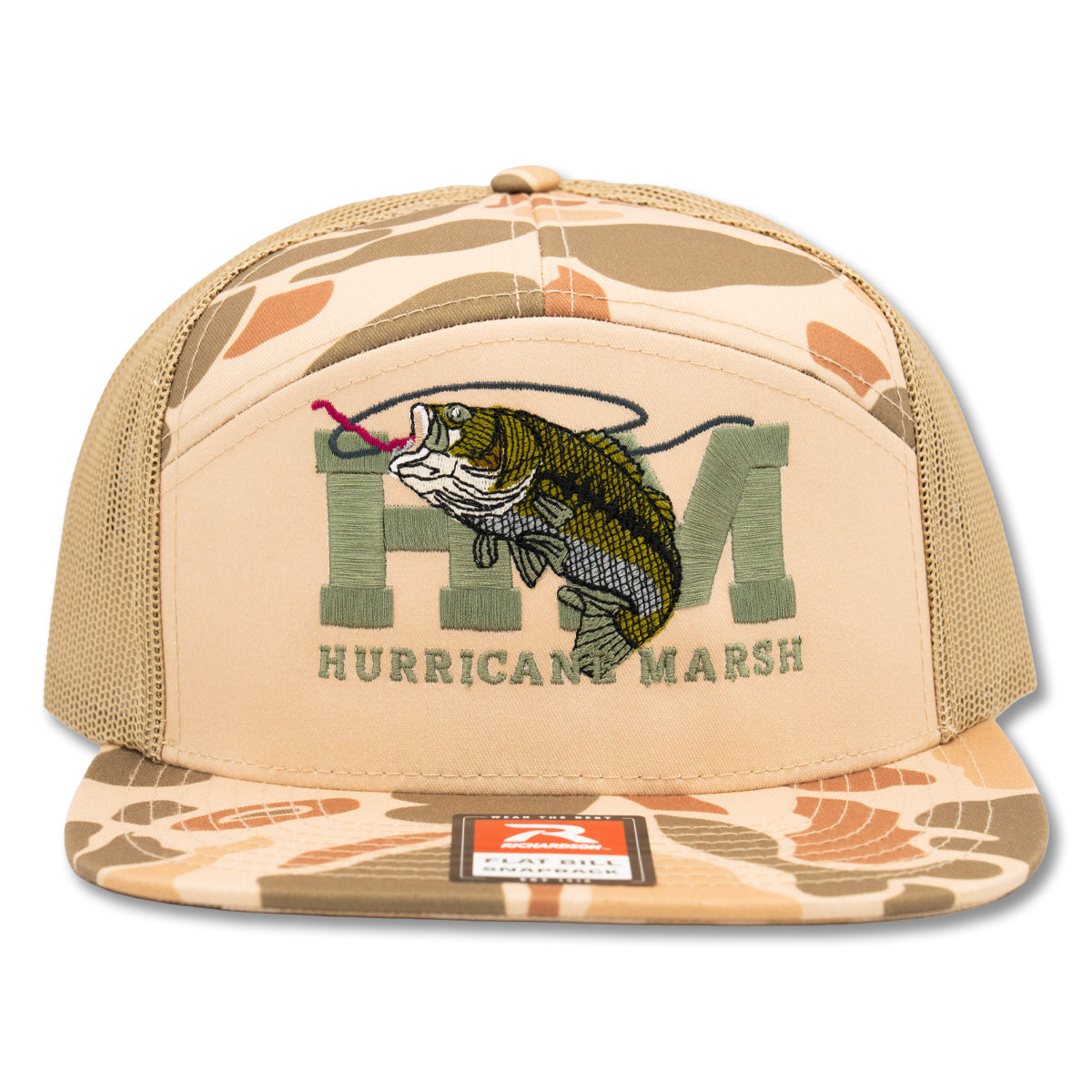 Introducing the Bass Richardson 168 7 Panel Hat, designed for avid bass fishers. This cap was made for fishermen. Our HM Bass logo embroidered on a Richardson 168 with our all new bass logo, this hat ensures comfort and durability while out on the water.