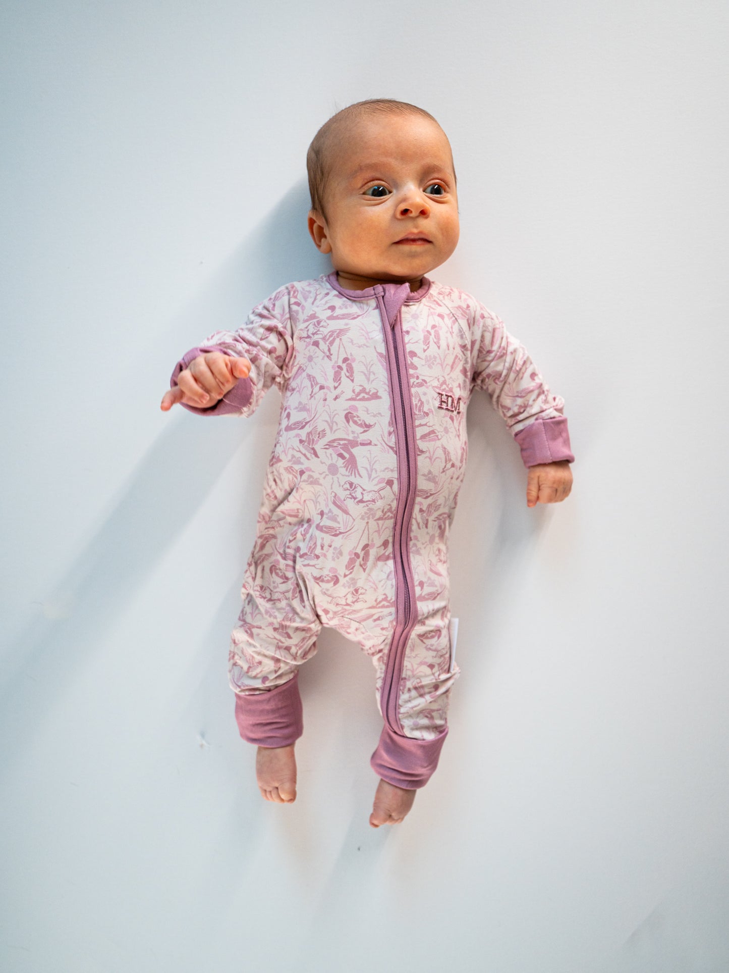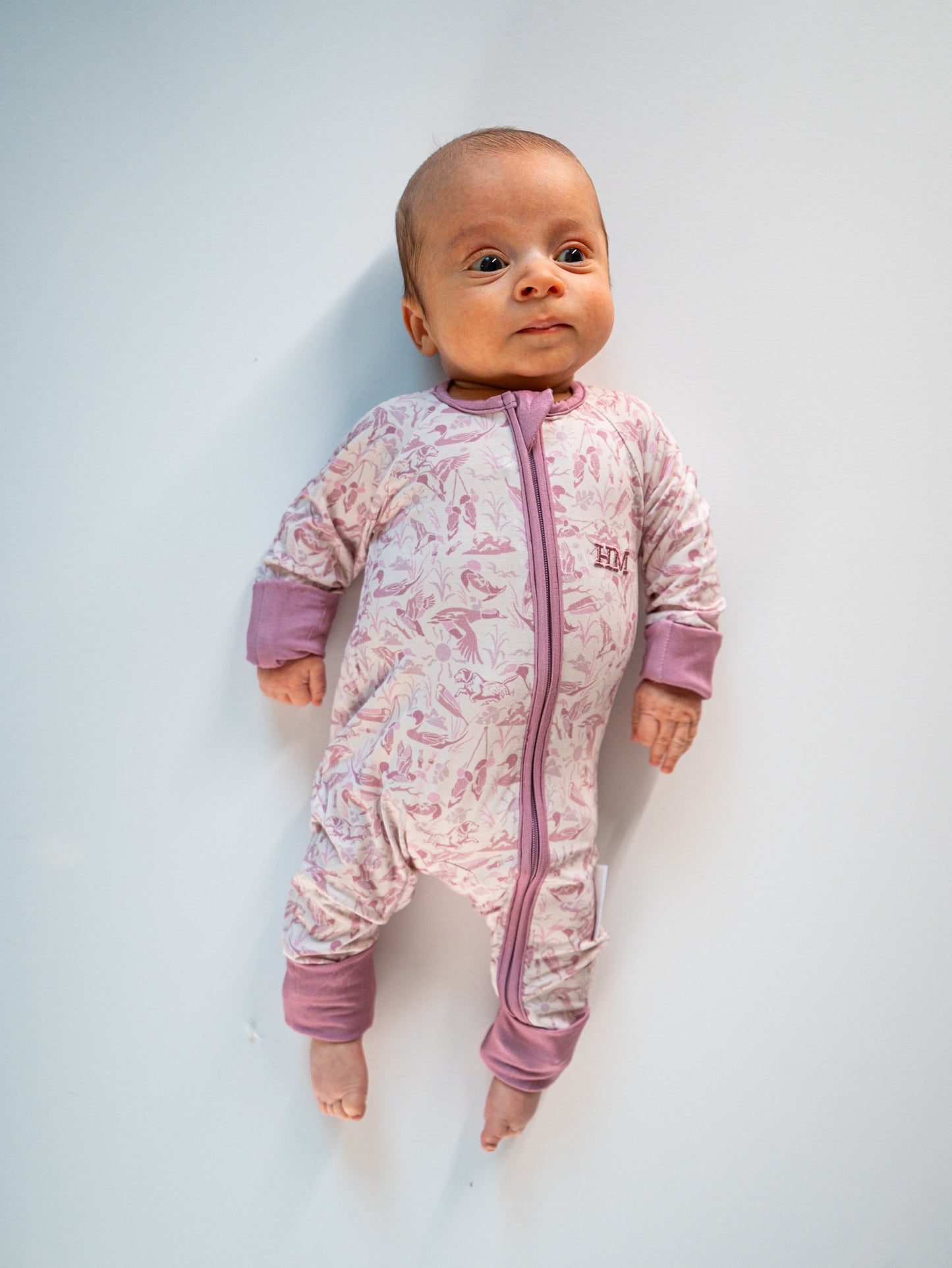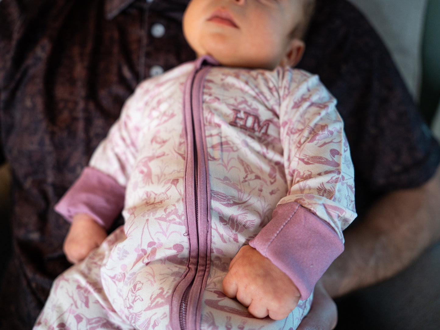 For the littlest member of The Crew. The Hurricane Marsh Baby Sleeper is made from buttery-soft bamboo-spandex that helps regulate baby's body temperature — so they stay cool when it's warm and cozy when it's not. Handy fold-over cuffs at the hands and feet let you cover up or keep things open as your baby grows, and the full-length zipper makes diaper changes quick and easy (especially in the middle of the night). From front porch naps to road trips to the deer camp, this sleeper is ready for whatever the day brings.
